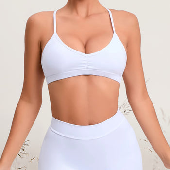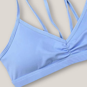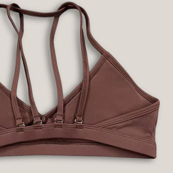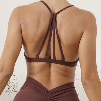 The V-neckline and subtle ruching flatter your natural shape, while the adjustable strappy back adds that perfect open-air feel for hot days. With removable padding and a soft, sculpting stretch, it delivers light support that adapts to you—not the other way around.