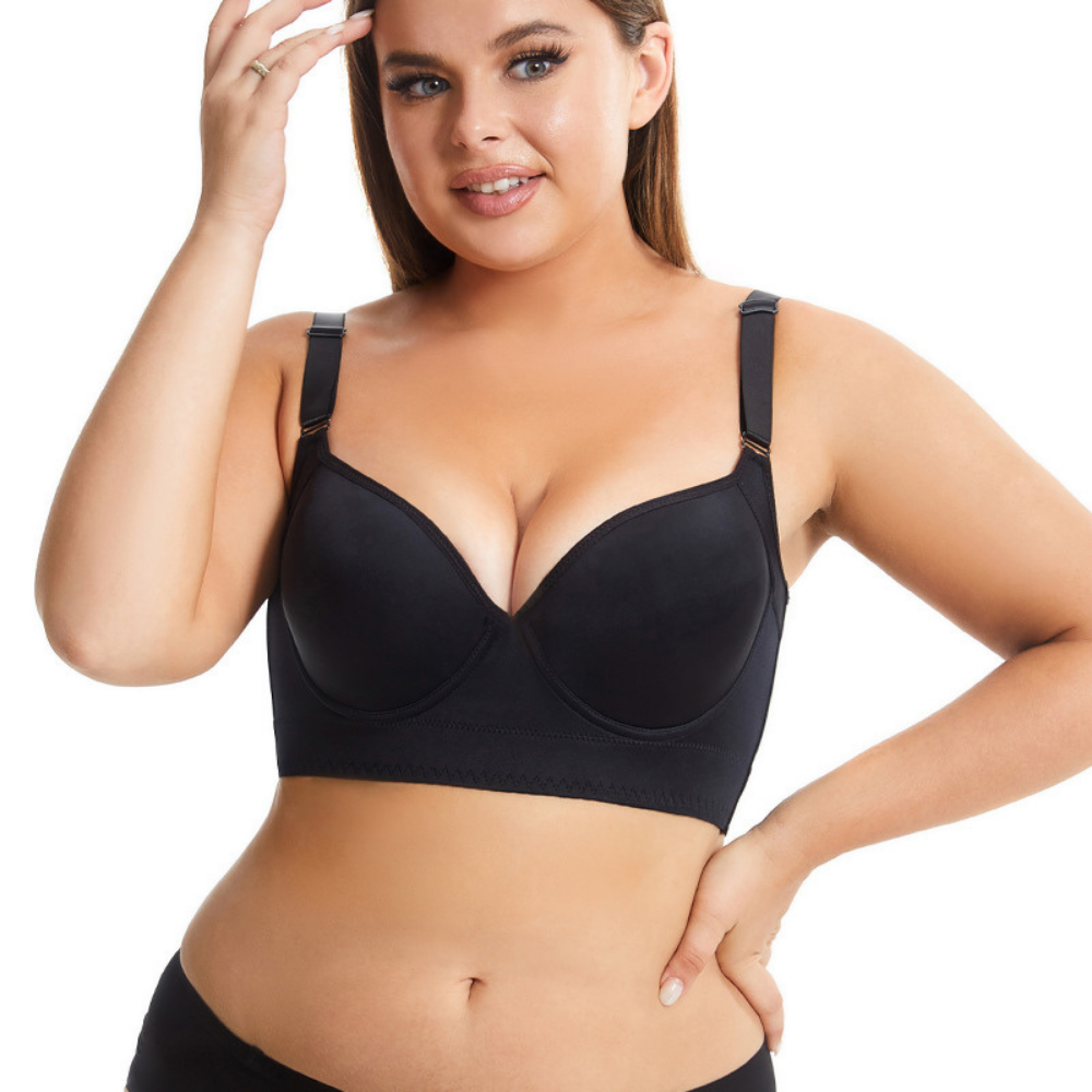 Made from a high-quality blend of nylon and spandex, it’s both durable and stylish. You can easily wash it in the machine and lay it flat to dry. Whether it’s a special occasion or a regular day, the Magic Back Smoothing Push-Up Bra Plus Size has you covered. With its new G-J sizes and a variety of colours, you’re sure to find your perfect fit. Upgrade your lingerie collection today with our most-loved bra, and experience confidence like never before!